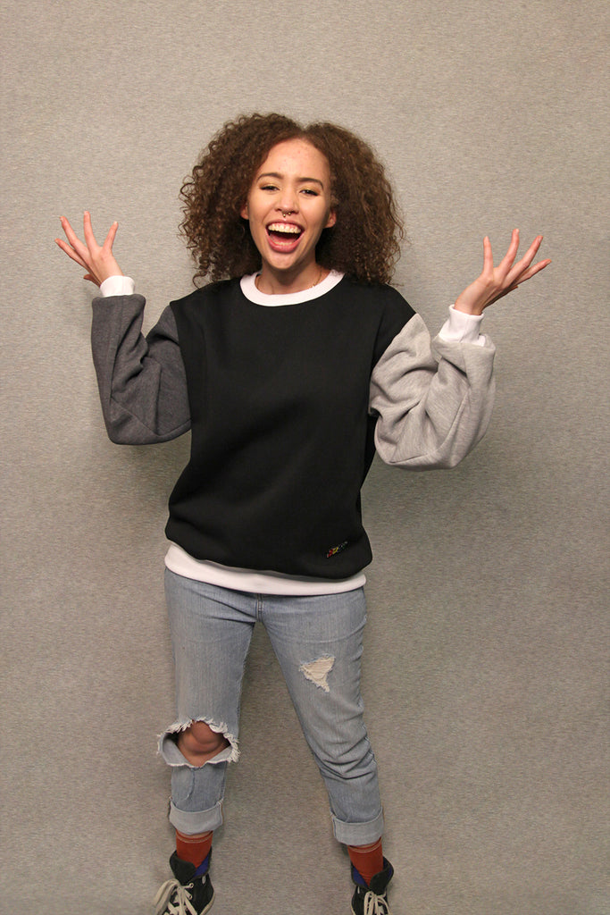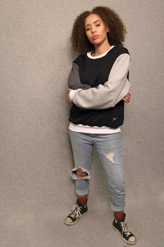 • Contrasting sleeves and rib trims