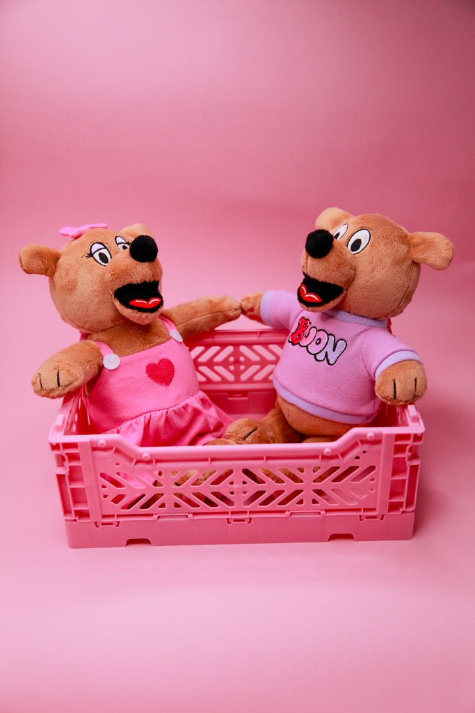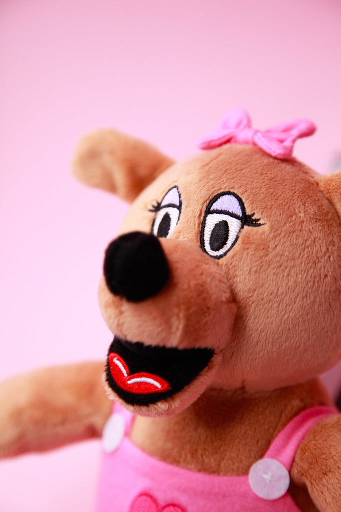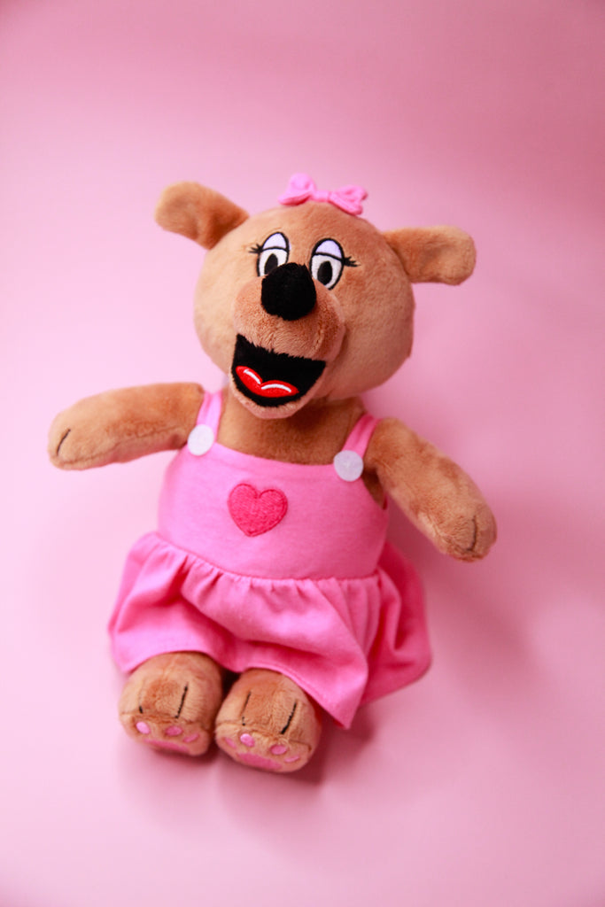 High quality minky body complete with tiny pink jersey dress with logo embroidery and lil buttons hehe